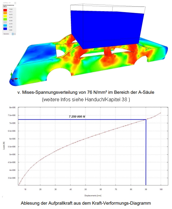 Falltest-FEM-Simulation 10t Fels fällt auf Auto-Dach